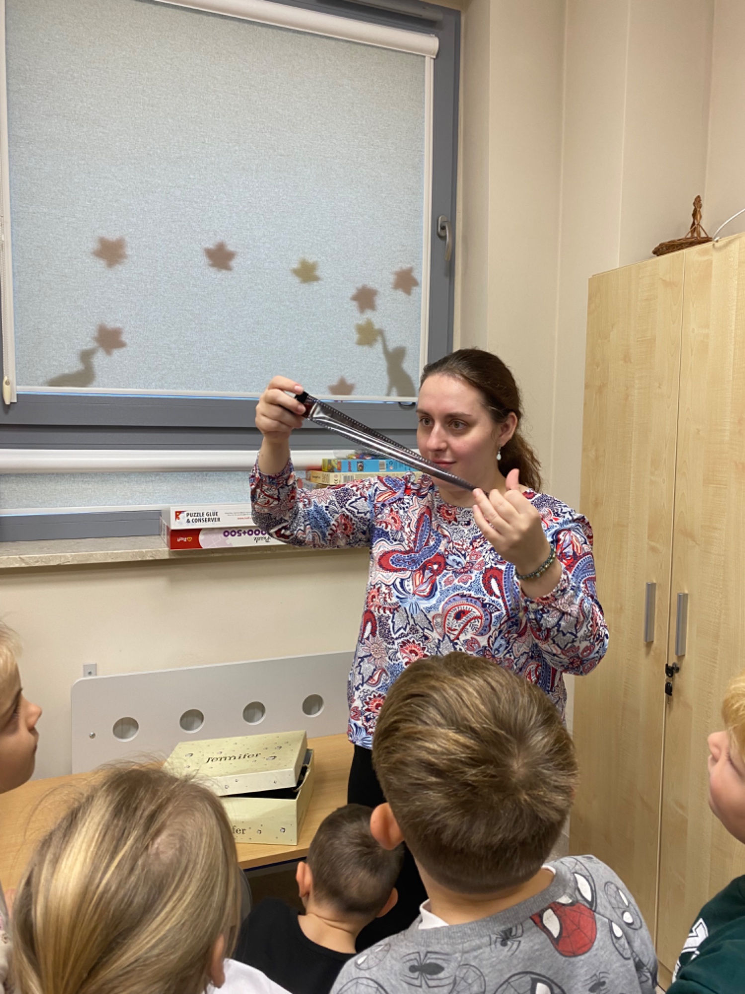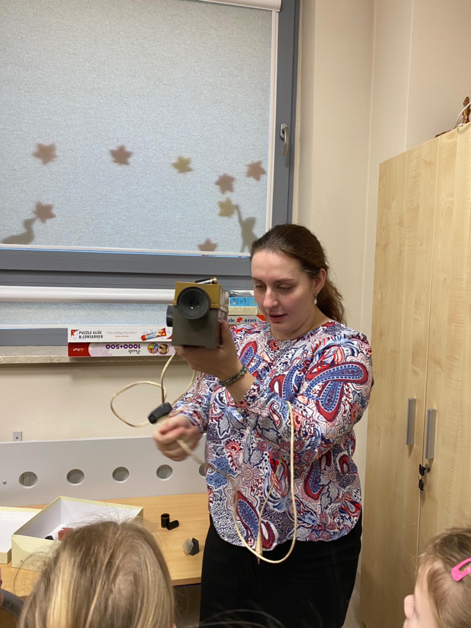 W ramach programu "Podróże z książką pod pachą" odwiedziliśmy bibliotekę w SP.14. Pani Ola pokazała nam swój prywatny projektor, na którym kiedyś oglądało się bajki. Bardzo dziękujemy, za możliwość zapoznania się z tym urządzeniem. Obejrzeliśmy bajki pt. " Okulary " , "Kaczka dziwaczka " i " Idzie Grześ ".